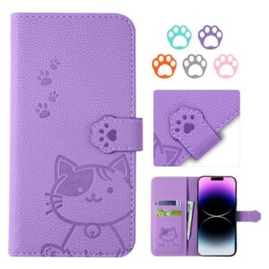 【YIMASE 対応 iPhone 17 Pro ケース 手帳型 】 いphone17pro ケース 手帳型 すべてのコントロールと機能に正確かつ簡単にアクセス アイフォン17プロ 携帯ケース 可愛い スタンド機能 あいふおん17proケース スタイリッシュでかわいい猫柄の iphone17pro カバー アイホン17プロ 携帯カバー 財布型 -パープル