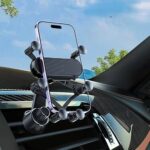 ユニバーサルカーフォンマウントは360°回転可能なアームを備え、ダッシュボードやベントにクリップ固定できます。4〜7.5インチのスマートフォンに対応し、ブラックカラーです。