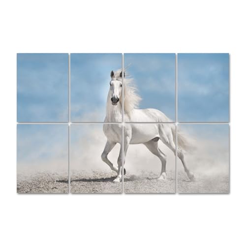8枚 防音シート 厚さ1cm 自己粘着 吸音材 壁 難燃 水を走る白い馬の群れ 防音材 室内装飾 寝室 家 オフィスの壁用吸音パネル 音を吸収・低減、騒音・反響音を消す 取り付け簡単 縦80cm×横120cm