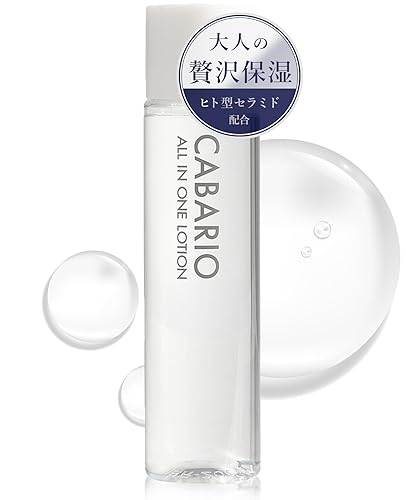 CABARIOエイジングケアオールインワンは、高保湿の化粧水で、195mLの容量。30代から60代の男性向けに特化しており、セラミドを配合して肌の保湿と弾力をサポートします。