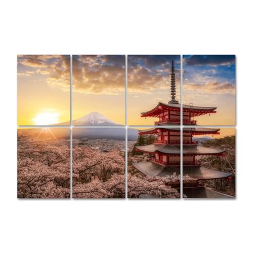 8枚 防音シート 厚さ1cm 自己粘着 吸音材 壁 難燃 富士山、日本の春の風景、桜の花が咲く川 防音材 室内装飾 寝室 家 オフィスの壁用吸音パネル 音を吸収・低減、騒音・反響音を消す 取り付け簡単 縦80cm×横120cmの高価買取ITEM
