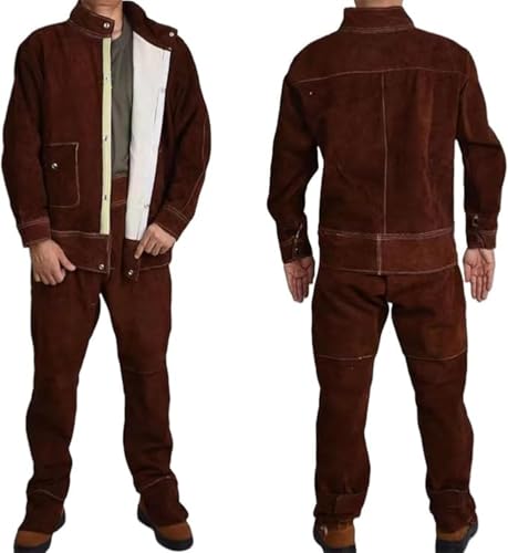 FryWareの溶接服は、耐アークスパッタ革製で、長袖ハイカラー、ポケット付き。難燃性で電気溶接やアルゴンアーク溶接に最適なXXLサイズの作業服です。