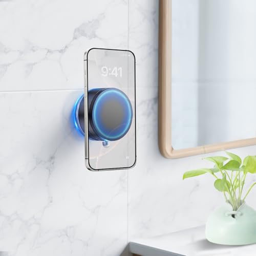 2025年アップグレード版の磁気電話ホルダースタンド。Magsafe対応、真空吸盤でミラージムに最適。iPhone 16/15/14/13/12及び全スマホ対応のブラックデザイン。
