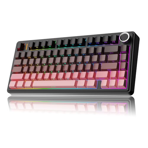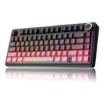 MechLands AULA F75 PROは、75%コンパクト設計のメカニカルキーボード。BT5.0、USB-C、2.4GHz対応。ガスケット構造、ホットスワップ可能、RGB照明、リーパースイッチ採用。対応OS:Win/Mac(ブラック/ピンク)。