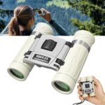 超軽量200gの双眼鏡。20倍の倍率で遠くの景色を鮮明に観察。防振設計、99.8%透過率のBaK4プリズム、FMCコートを採用。生活防水で、観劇やスポーツ観戦、野鳥観察に最適。収納バッグ、ネックストラップ、日本語説明書付き。
