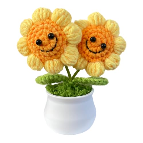 手編みのひまわり造花は、可愛いサイズでインテリアにぴったり。卓上飾りや小物グッズとして最適です。贈り物にもおすすめのニットフラワーです。笑顔を届ける一品をぜひどうぞ。