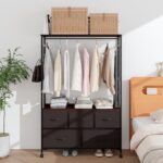 LunarLightハンガーラックは、幅100cm、奥行30cm、高さ151.2cmで、衣類をスリムに収納可能。耐荷重150kg、2段の大容量引き出し付きで耐震転倒防止機能も。スタイリッシュで移動も簡単(ストッパーキャスター付き)です。