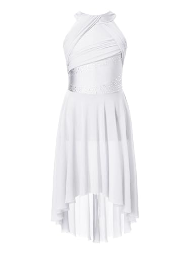 Yruioonの女の子向けリリカルバレエダンスドレスは、ノースリーブデザインにキラキラのラインストーンが施されています。白い色合いが清楚で、舞台やレッスンに最適です。サイズ16でフィット感も抜群です。