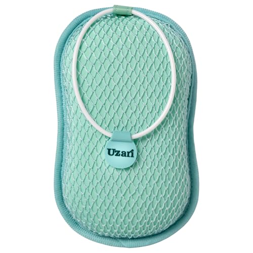Uzari SkincareのU-Scrubは、男女兼用の角質除去メッシュスポンジです。ウェット・ドライ両用で洗濯機洗い可能。サステナブルなボディケアアイテムで、トラベルバッグ付き。