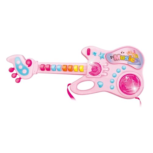 ハック 弾いて!楽しい!キッズミュージックギターは、ピンクのデザインで約W360×H140×D30mmのサイズ。子供にぴったりな楽器です。