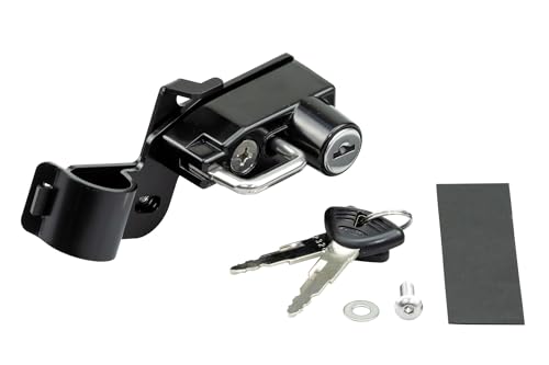 キジマのメグロS1/W230用ヘルメットロックホルダーは、頑丈なスチール製で耐久性があり、盗難防止に最適です。ブラックのシンプルなデザインで、バイクにスタイリッシュに取り付け可能。