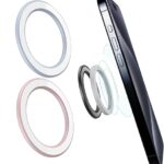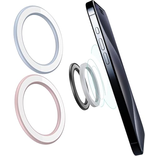 Menetop 磁力スマホ壁ホルダー2個セット。強力なMagSafeシールで、iPhone/iPad/Android対応。360°回転可能で、車、浴室、オフィス、キッチン、玄関で使えます。ブルーとピンクのメタルリング付き。