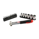 イーバリューのラチェットドライバーセットERD-126は、狭所作業に最適で、ビットとソケットの取り付けが可能な2WAYヘッドを搭載。ラチェット機能により効率的な作業が実現します。
