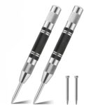 FUYUERO 自動穴あけパ ンチ、自動センターパンチ、スチール製スプリング式セン ター穴あけパ ンチ、調整可能なスプリング衝撃力センターマーキングツール、ガラス、マーキング、穴あけ、木材、金属、プラスチック用 2点セット(予備針2本付き)の製品情報