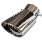sakurawing 汎用マフラーカッターは、下向きの曲がり形状でシングルストレートデザインです。オーバル型の跳ね上げタイプで、1本のステンレス製。軽量で自動車用のシルバー仕上げ、スラッシュスタイルが特徴です。