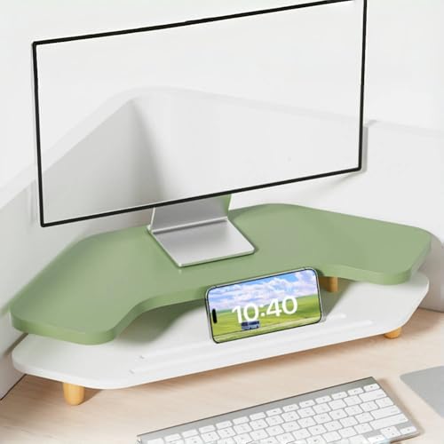 Bxzzuisモニター台は、デスク上での作業効率を向上させる三角ホルダー付きのスタンドです。グリーン色でスタイリッシュなデザイン、スマホ収納も可能。簡単に組み立てられます。