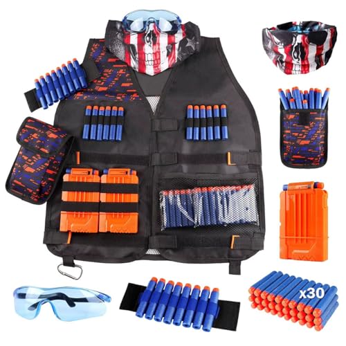 タクティカルベスト子供用。保護メガネ、詰め替えダーツ、マスク付き。安全なアウトドアゲームに最適。親子で楽しむかくれんぼや鬼ごっこに。