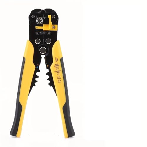 絶縁/裸/熱収縮コネクタ用の多機能ワイヤークリンパー。ストリッパー、カッターも搭載し、使いやすいイエロー仕様。