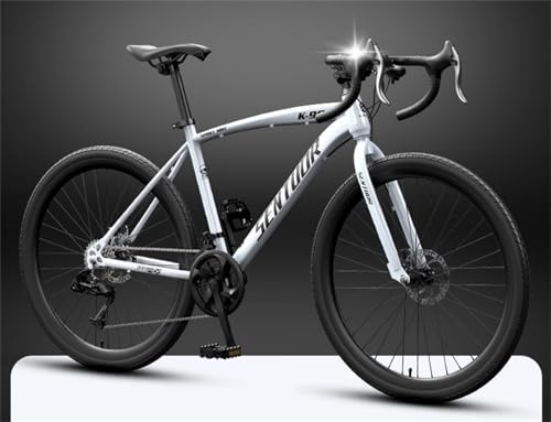 26インチ24変速のロードバイクで、競速に最適なデザイン。破風性能を持つ曲げ変速機構搭載。男女兼用で、大人や学生におすすめ。身長165-185cm対応、パールホワイト。