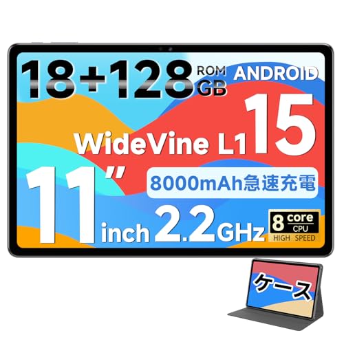 Android15タブレット11インチ、18GB+128GB、T7280チップ、FHD2K、8コアCPU、Widevine L1対応。軽量薄型、8000mAh、18W急速充電、顔認証、GPS、保証付き。