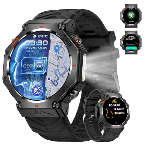2025年最新のスマートウォッチ。AI文字盤、GPS、3ATM防水、高輝度懐中電灯、耐衝撃 design。1.39インチ大画面、Bluetooth 5.3通話、長持ちバッテリー、100+運動モード、通知機能あり。iPhone & Android対応。