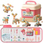 大工ごっこ遊びおもちゃの工具セット。電動ドリル付きで、146個のアイテムが楽しめます。3~5歳児向けの知育玩具ギフト。バッテリーバージョンもあり、創造力を育む最適な選択です。
