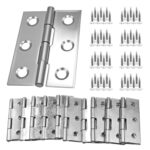KKLM平型ステンレス製ヒンジ10個セット。耐久性のある素材で、付属ネジ60本付き。ドアやキャビネット、ジュエリーボックスなどのDIYに最適。無音でスムーズな動作。