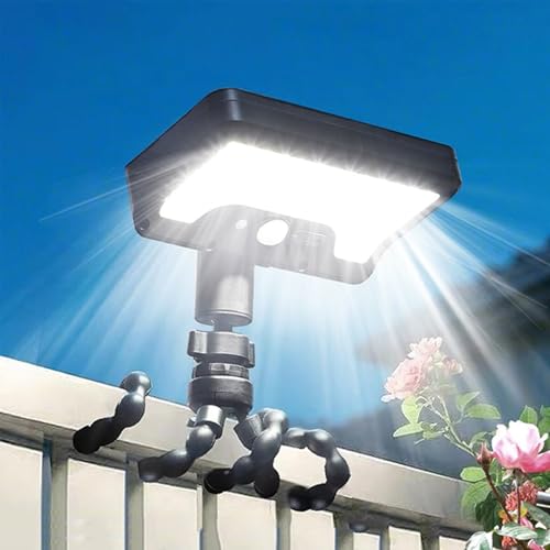 屋外用ソーラーライト。人感センサー搭載で自動点灯消灯。防水・クリップ式で360°回転可。USB充電対応、3つの知能モードを搭載し、玄関や庭に最適。防犯や災害対策にも。