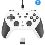 abxylute C5PはPC/Switch/iOS/Android/PS3/PS4/Steam/MAC対応のワイヤレスゲームコントローラー。2.4GHzホール効果スティック、リマップ可能な背面ボタン、ゴム加工グリップ、振動機能搭載で無線/有線使用可能。