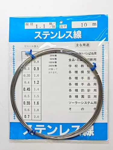 ステンレス線軟線、線形1.1mm、約10mの長さ。耐久性に優れ、加工しやすい特性を持つ。工具製作やDIYに最適。錆に強く、屋外での使用にも適応。
