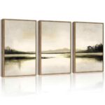 PHOPAGOの抽象的な湖の風景のウォールアート。サイズは40.6×61.0cm、素材は水彩。北欧スタイルのナチュラルフレーム付きで、自然を感じる装飾に最適です。