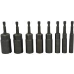 ソケットビット6mm〜19mmの8本セット。電動ドライバー対応でDIYに最適。六角軸1/4インチ、長さ65mm/80mmのアダプター付き。GRmkt製の高品質工具です。