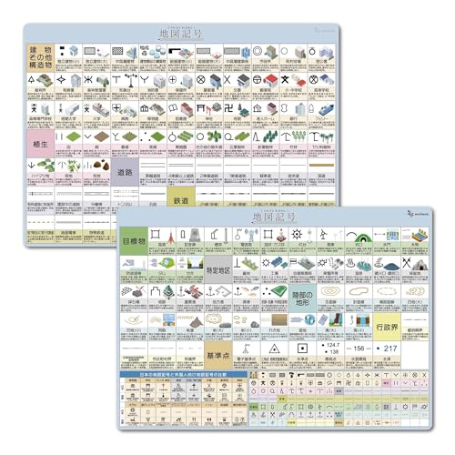 下敷き 地図記号 A4サイズ(21×29.7cm)、角丸・両面タイプで、書きやすいデザイン。学校や勉強、受験に最適。社会・地理の学習サポートに役立つArchestの製品です。