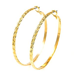 PLUSTER ピアス フープ シンプル チタン イエローゴールド ポスト 金属アレルギー対応 レディース ビッグ 50㎜ [専用ポーチ付き] 人気 誕生日 プレゼント 母の日 ジュエリー プラスター