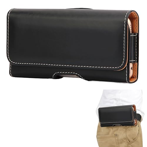 East Leafのスマホベルトケースは、2段階固定のマグネット式で落下防止機能を備えています。横型で対応サイズは長さ17.5cmまでのスマホです。