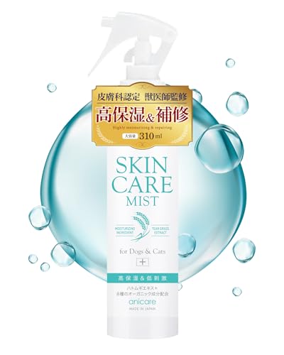 【皮膚科認定獣医師監修】アニケア犬保湿スプレーは、完全無添加で国内生産の310ml大容量。ハトムギを配合し、愛犬の肌をしっかり保湿します。安心して使えるアイテムです。