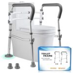 トイレ手すりは、調節可能な立ち上がり補助で、置くだけで簡単に設置。滑り止め機能付きで、高齢者や身体障害者、妊婦に最適な頑丈なデザインです。