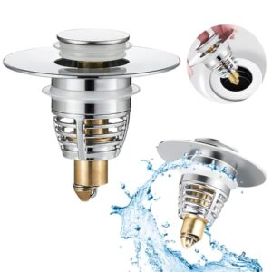 G1-1/4″洗面用ポップアップ排水栓 横穴排水栓 排水用品 下水部品 ドレイン 排水栓 洗面器用 水栓材料 改装 キッチン用 流し台用 台所 調理場の流し オーバーフロー付き (銀ねずみ色)