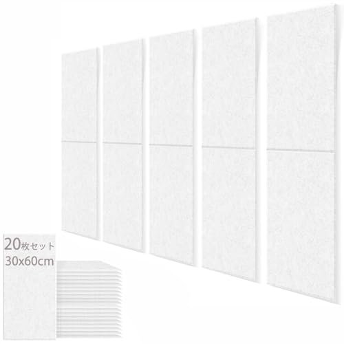 Hopeholic 吸音パネルは、30×60cmのサイズで20枚入り、施工面積3.6㎡。高密度・軽量で、部屋の防音対策に最適。接着剤付きで簡単設置。騒音対策や楽器部屋におすすめのホワイト色です。