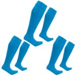 サッカーソックス3足セット。靴下はポリエステル100%で丈夫。メンズ、レディース、キッズ向けにサイズ展開あり。カラーバリエーション豊富で、練習着やチームカラーにも最適。サイズは22.0cm、24.0cm、22-24cm、カラーはターコイズ。