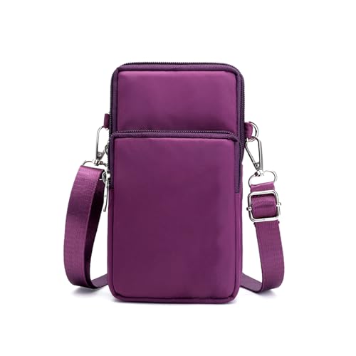 女性用クロスボディバッグ。軽量ナイロン製、サイズは7.4 x 3.9 x 0.78インチ。便利なクロスボディストラップ付きの小型携帯電話財布、カラーはディープパープル。