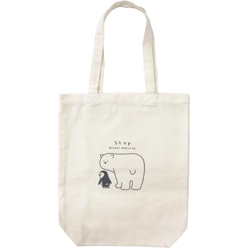 トートバッグは、シロクマとペンギンの可愛いイラスト入り。キャンバス素材でA4サイズ対応、内ポケット付き、マチあり。肩掛けも可能で、エコバッグとしても便利です。