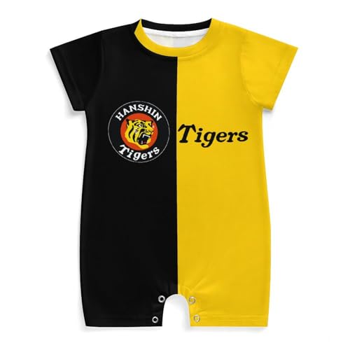 阪神タイガースのベビー服、半袖ロンパースは男の子・女の子向け。0-24ヶ月対応で前開きデザイン。夏の出産祝い・誕生日プレゼントに最適なカバーオールです。