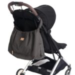 撥水機能付きのb型ベビーカーバッグ。おむつポーチや荷物入れとして便利なグレーのデザイン。軽量で収納力も抜群。外出時におすすめのアイテムです。