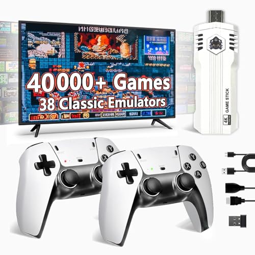 アップグレードレトロゲームスティックプロは、40000以上のゲームを内蔵し、38種類のエミュレーターを搭載。4K対応、デュアル2.4Gコントローラーでテレビに接続可能。