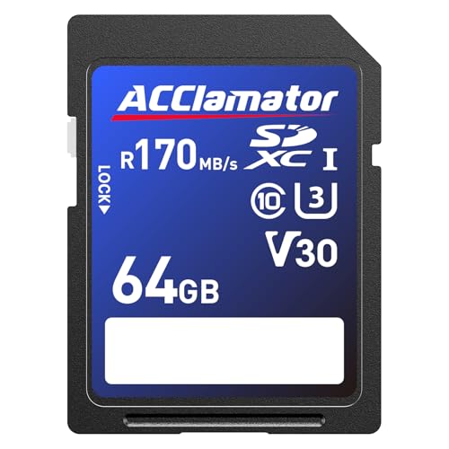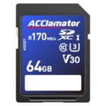 Acclamatorの64GB SDXC UHS-I V30カードは、最大170MB/sの読出速度を誇ります。U3 Class10対応で、Full HD及び4K UHDビデオ撮影に最適です。