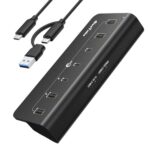 AivaToba USBハブは、7ポートのUSB 3.2 Gen2(10Gbps)で、4つのUSB Aポートと3つのUSB Cポートを備えています。BC1.2充電をサポートし、USBケーブルとType Cケーブルが付属。