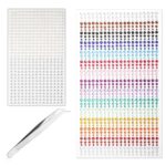 ラインストーンステッカー1350枚セット。サイズ: 0.12/0.16/0.20インチ。自己粘着タイプで、メイクやネイル、ヘアデコレーションに最適。ピンセット付きで使いやすい。