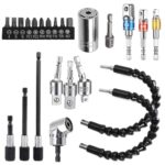 ESJNNK 電動六角ドライバードリル24点セット。フレキシブルシャフトやドリルシャフト、延長工具、ネジ締め、穴あけ用のソケットアダプターを含み、DIYやドリルアクセサリに最適。
