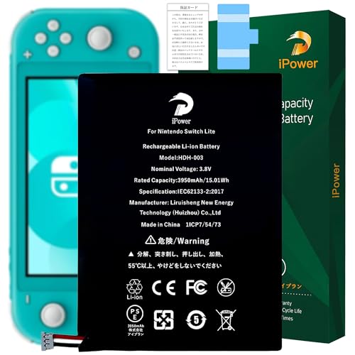 iPower for Nintendo Switch Lite バッテリー互換 大容量3950mAh 10.6%増量 3.8V HDH-003電池 PSE証明書 適用HDH-001/HDH-S-UXA-C0/HDH-A-BPHAT-C1等機種 Rechargeable Li-ion Battery 交換修理用 対応Switch Lite電池【No Tools】の製品情報